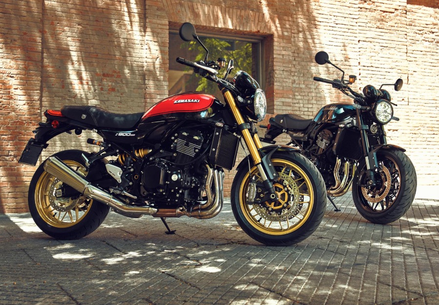 Côté design, la SE s’inspire de l’iconique style “Fireball”, avec des graphismes orange intenses et noir métallisé, tandis que les modèles standards proposent le “Blackball”, tout en noir avec emblèmes Fireball, et une évocation spectaculaire de la Z1B de 1975 en Rouge Candy Tone.